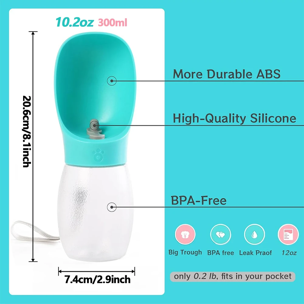 • Materiales seguros y duraderos: esta botella de agua portátil para perros está hecha de plástico apto para uso alimentario de alta calidad. Duradero y reciclable, fácil desmontaje y limpieza.Mantendrá la salud y vitalidad de tu mascota.Disfrute del acto al aire libre seguro y divertido con su mascota.