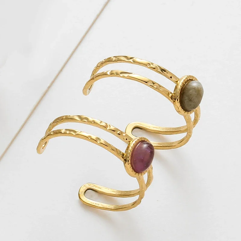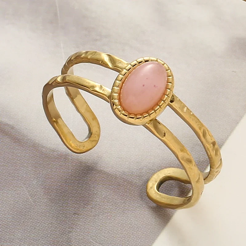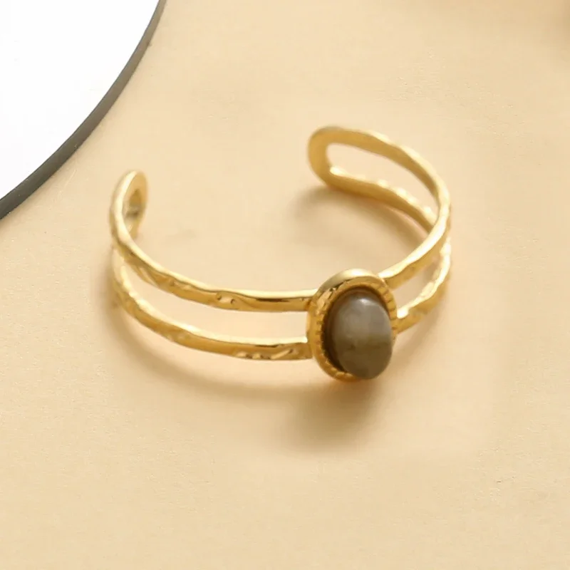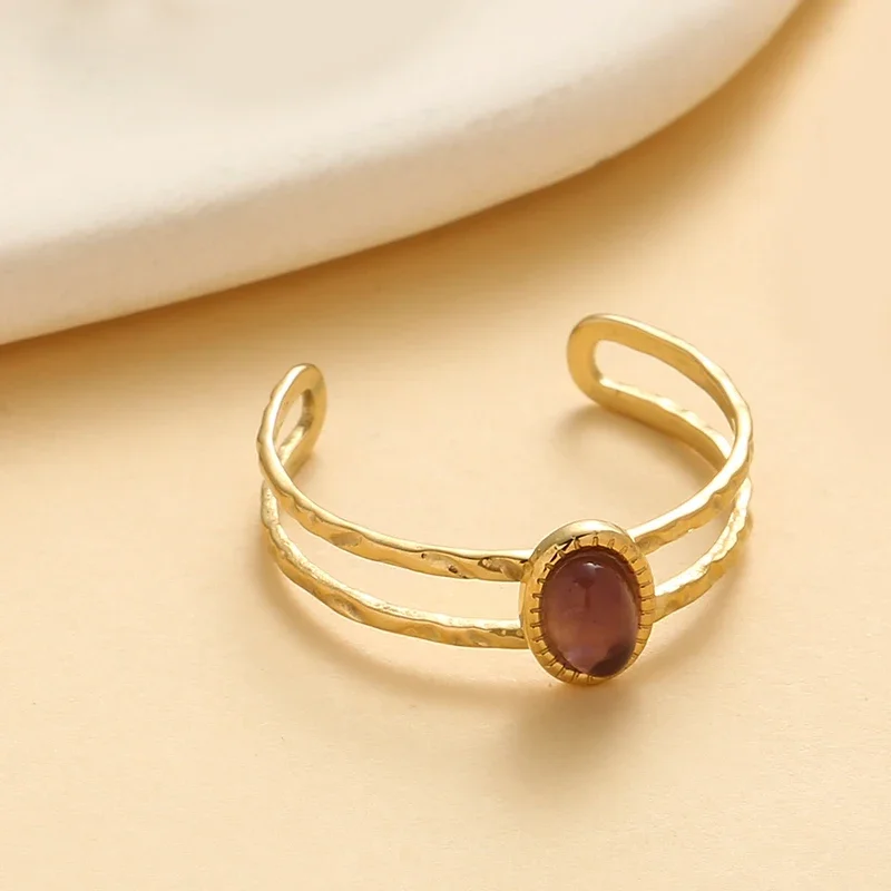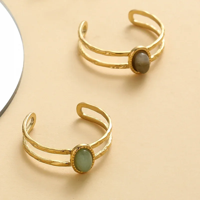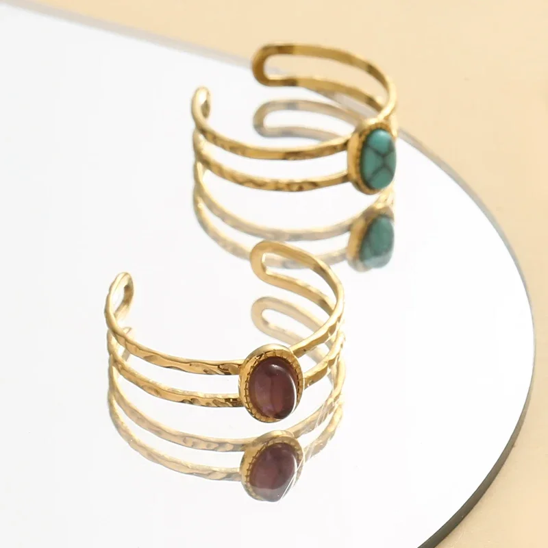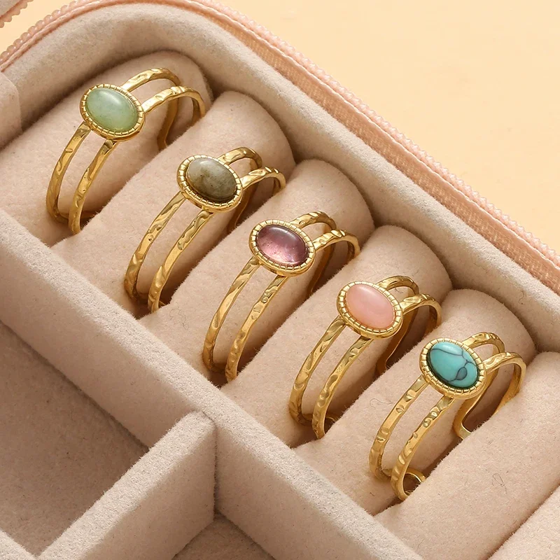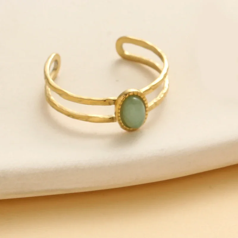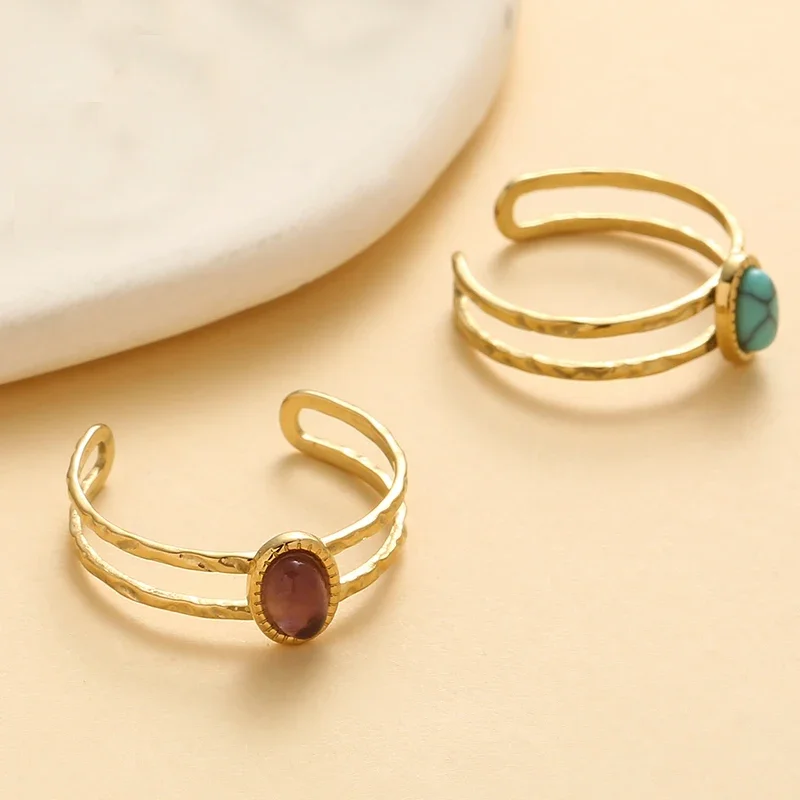 Anillos de piedra Natural turquesa hueca Bohemia para mujer, anillos abiertos ajustables de acero inoxidable, joyería de compromiso de doble capa