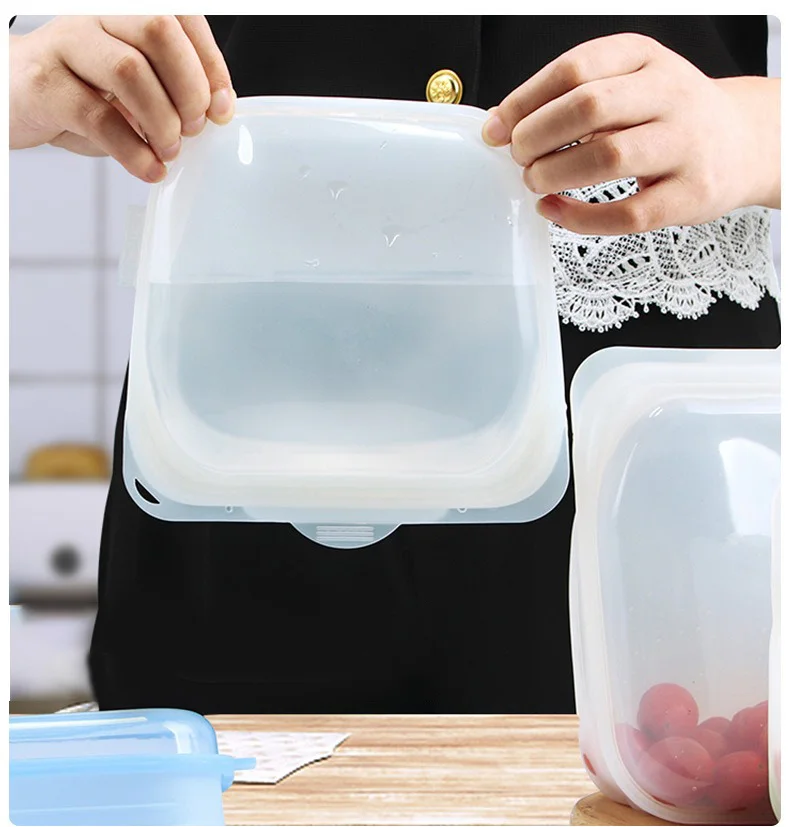 Bolsa de silicona de calidad alimentaria para mantenimiento fresco, reutilizable, resistente al calor, a prueba de fugas, bolsa sellada separada, contenedor de alimentos congelados para mantenimiento fresco