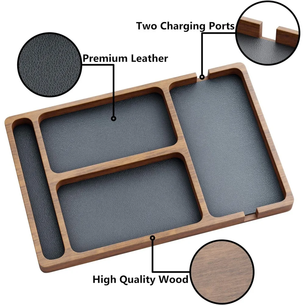 Zonificación clara: diseña múltiples áreas separadas para clasificar y colocar diferentes artículos como teléfonos móviles, billeteras, auriculares, relojes, etc., haciendo que los artículos sean ordenados y fáciles de encontrar.