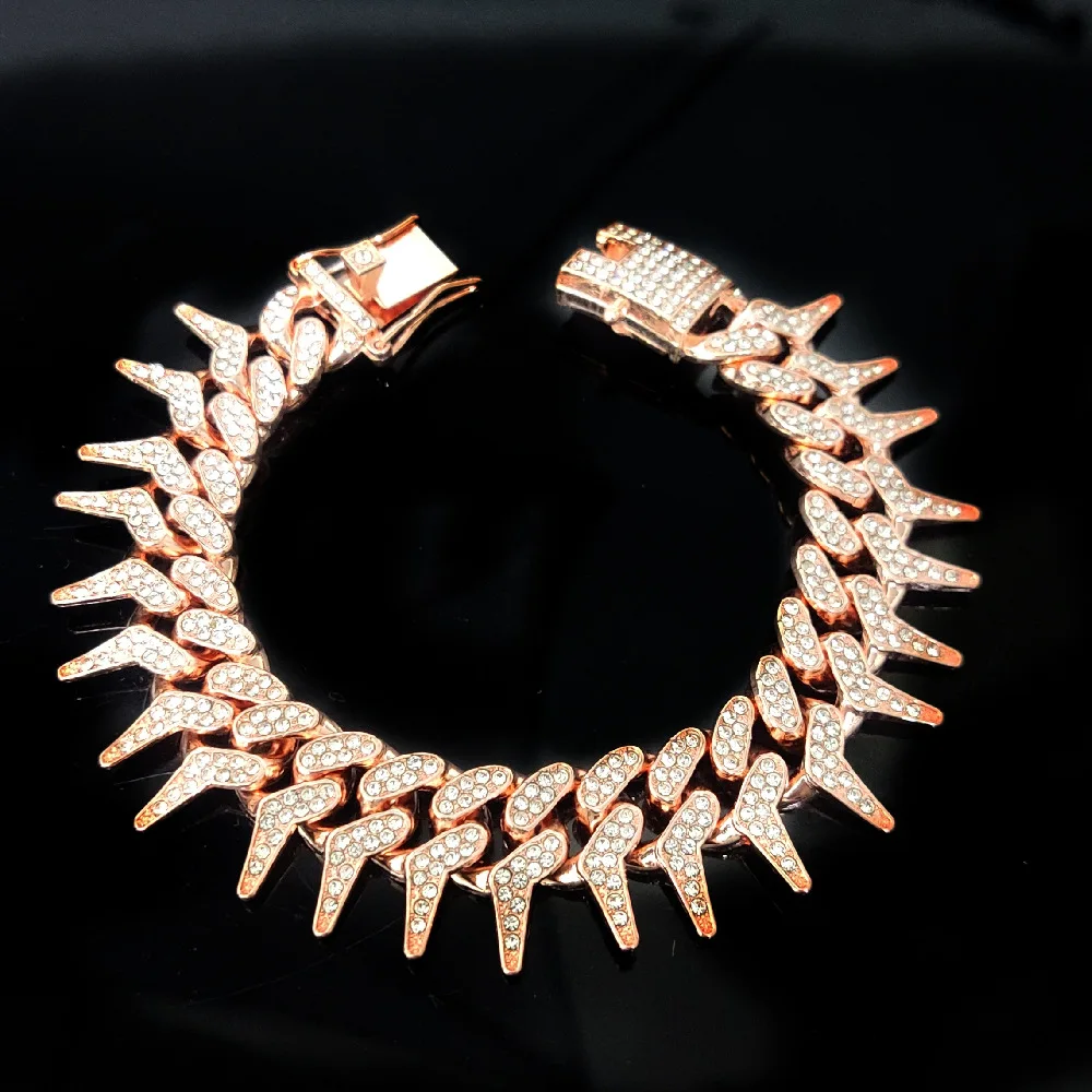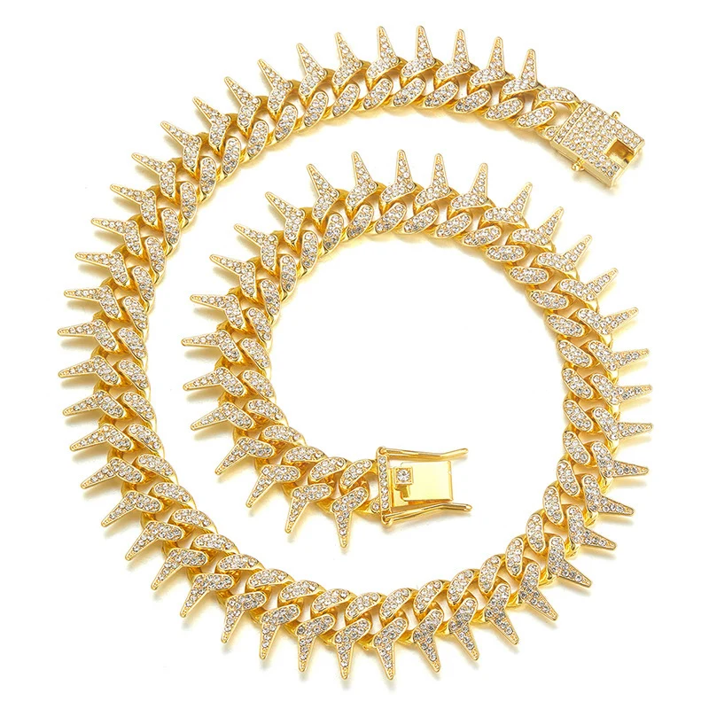 Collar para perros y gatos con cadena de diamantes brillantes de 13 mm con diseño de remache con pinchos, collar de perro de eslabones cubanos dorados de lujo para perros pequeños, medianos y grandes