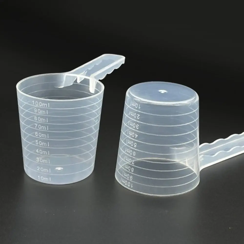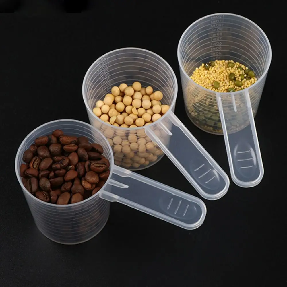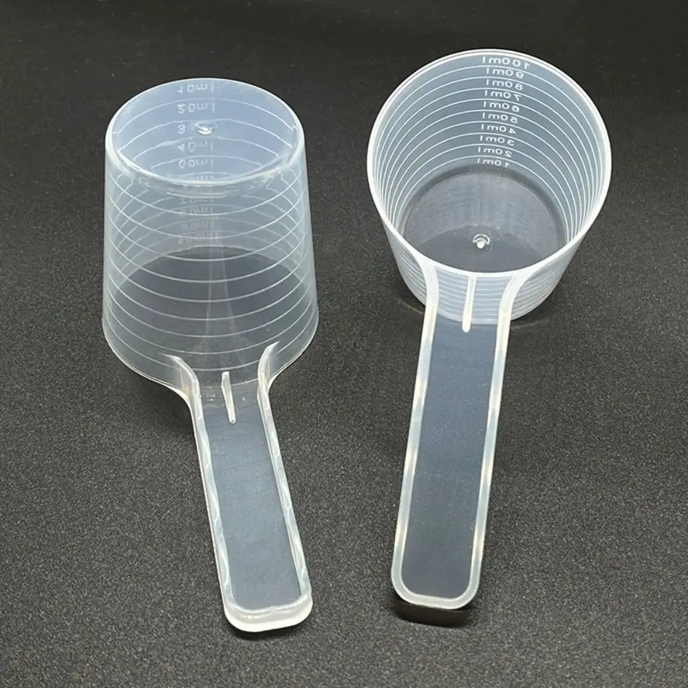 Cuchara medidora de plástico para mascotas, transparente con escala, cuchara para leche en polvo, multifuncional, duradera, de fondo plano, 5 uds.