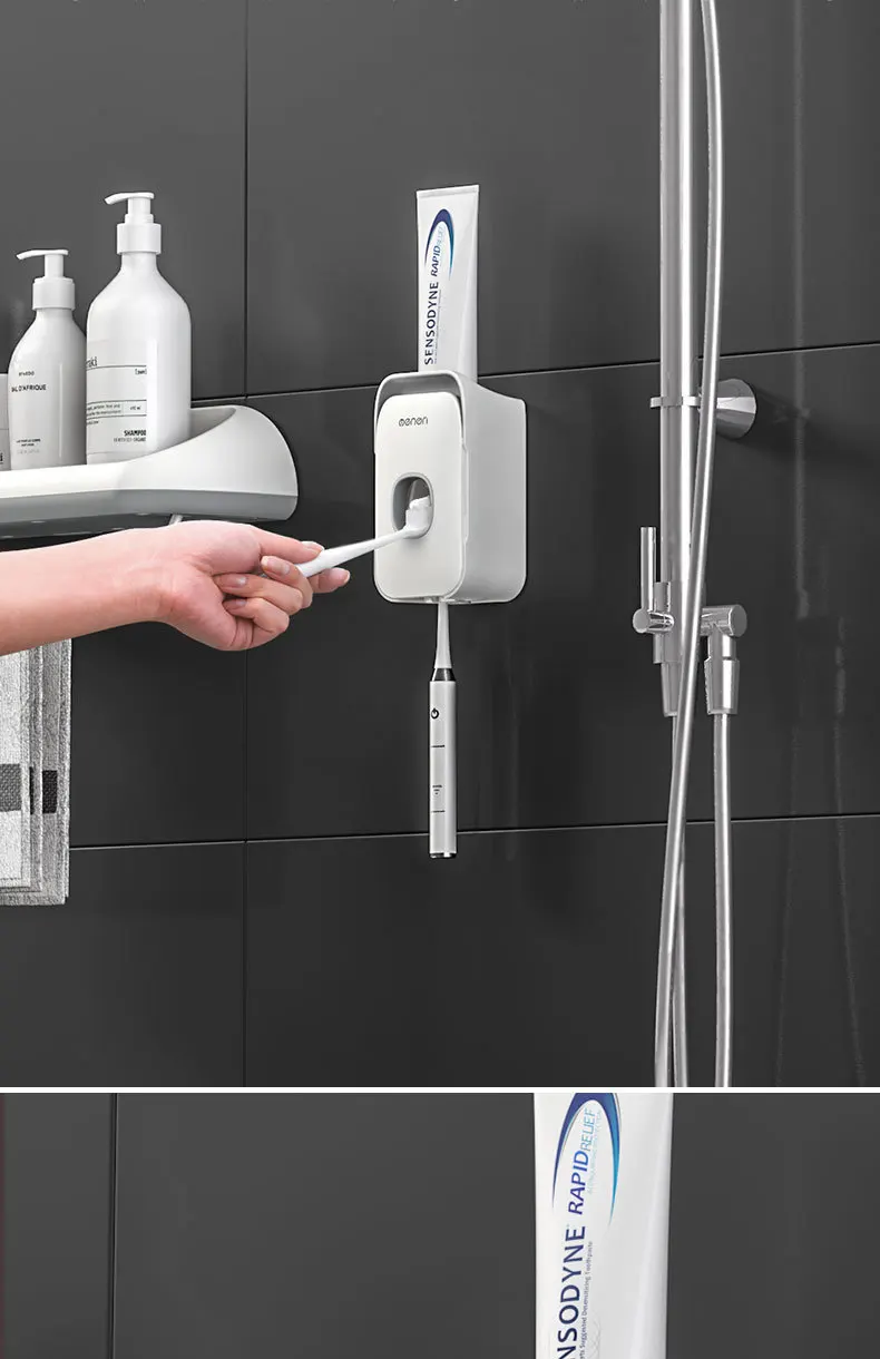 Dispensador automático de pasta de dientes, exprimidor con soporte para cepillo de dientes, juegos de accesorios de baño montados en la pared