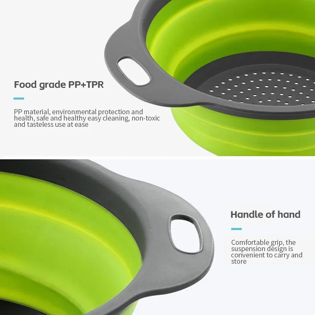 Escurridor plegable de silicona, cesta para lavar frutas y verduras, colador plegable, escurridor plegable, herramienta de almacenamiento de cocina