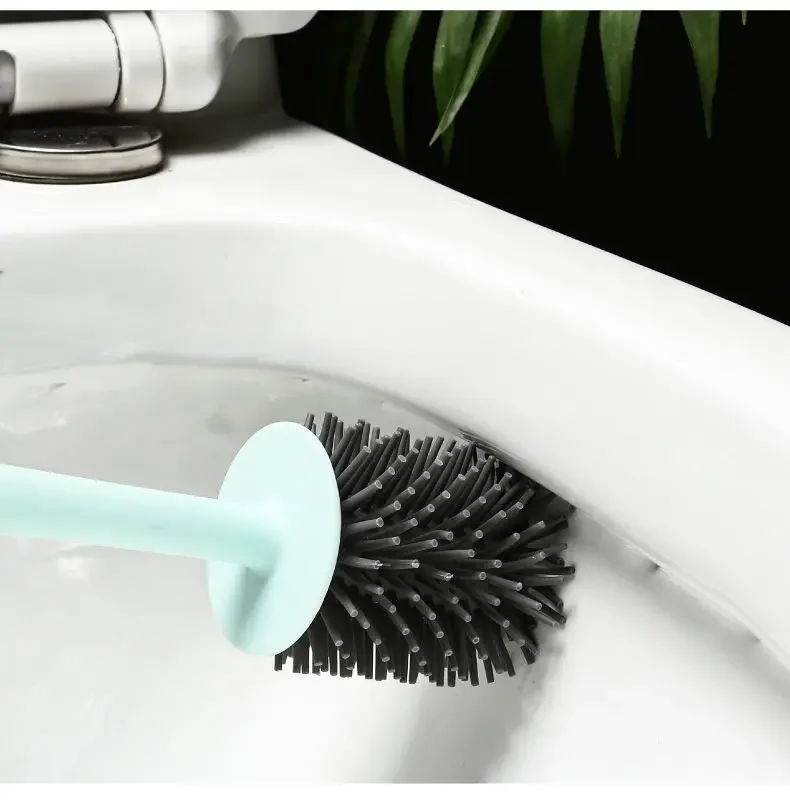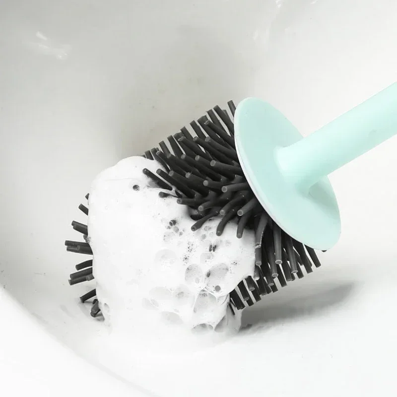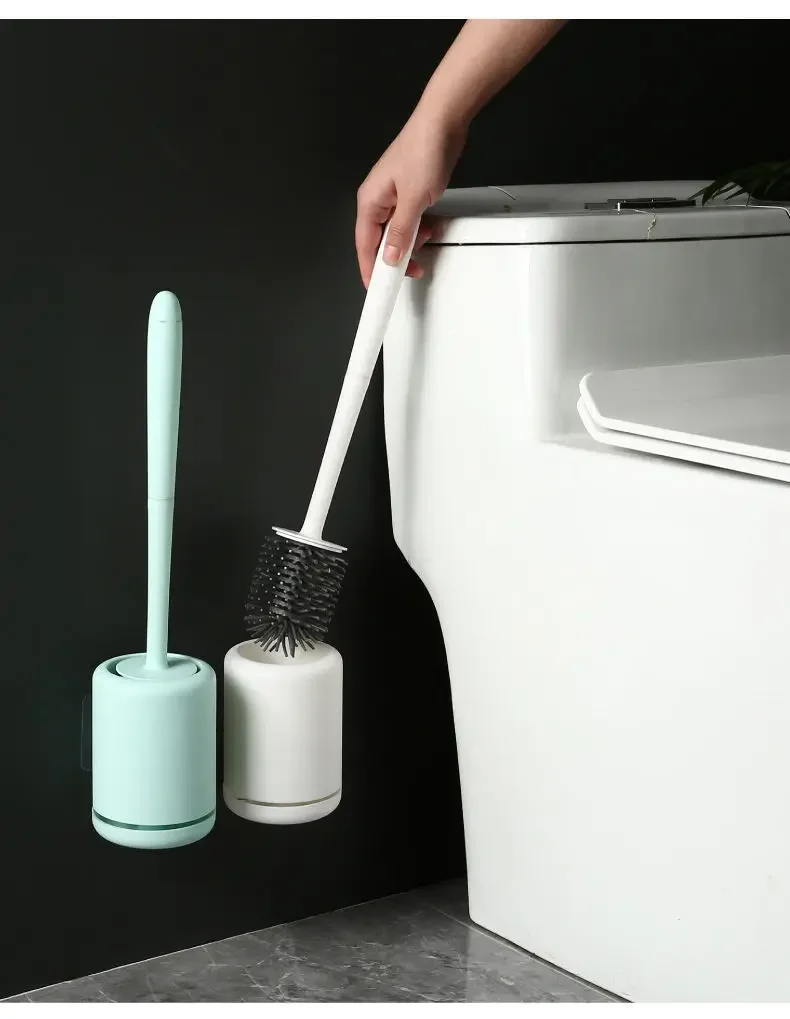 Limpiador de escobilla de baño de silicona colgante con mango largo, limpiador Flexible, soporte de secado rápido, accesorios de baño