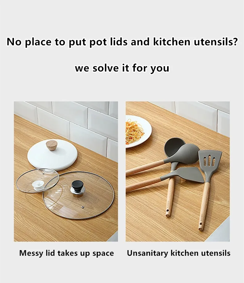 Se puede colocar cuchara y espátula de cualquier tamaño.Fácil de recoger, mantenga limpio el ambiente de la encimera de la cocina.