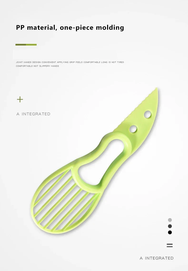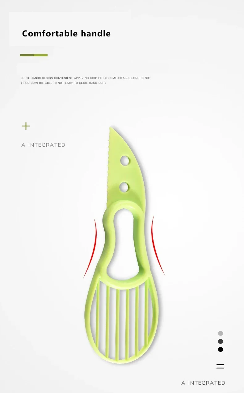 1. El mango ergonómico, fácil de usar, hace que el proceso de corte, hace que el cortador aguacates sea muy sencillo.
