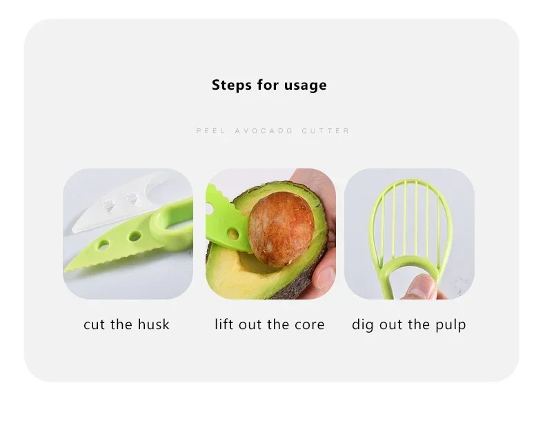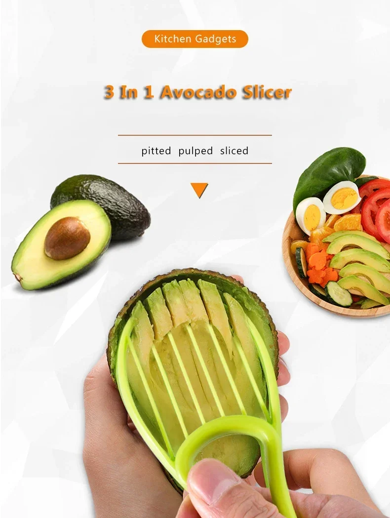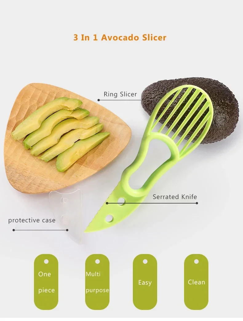 Rebanador de aguacate 3 en 1, cuchillo de plástico, pelador de frutas, cortador, separador de pulpa para el hogar, utensilios de cocina, herramientas para frutas y verduras