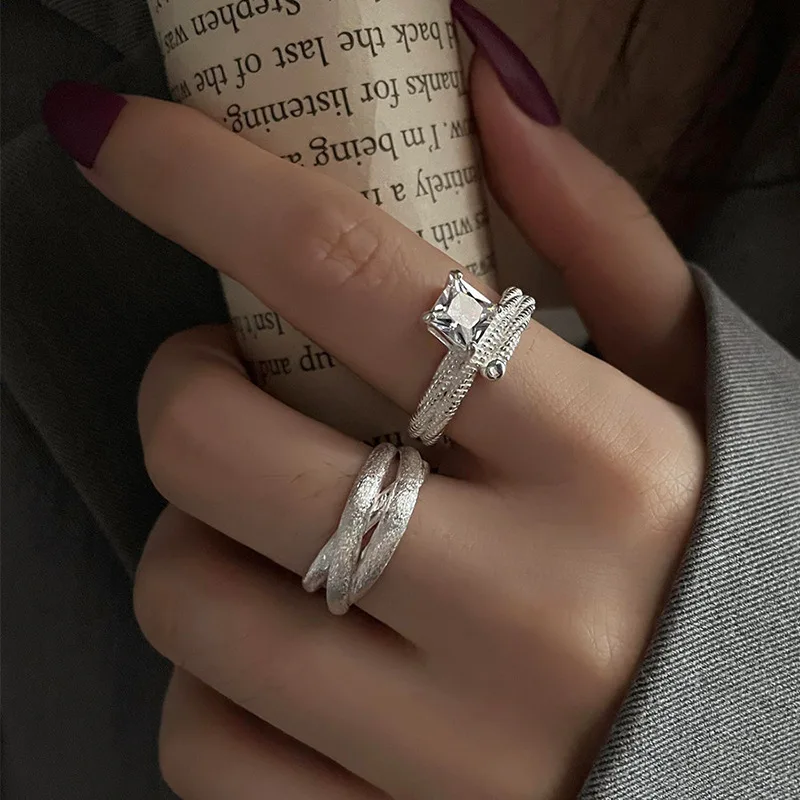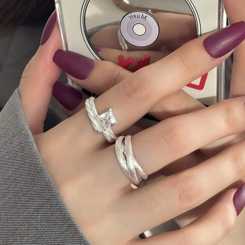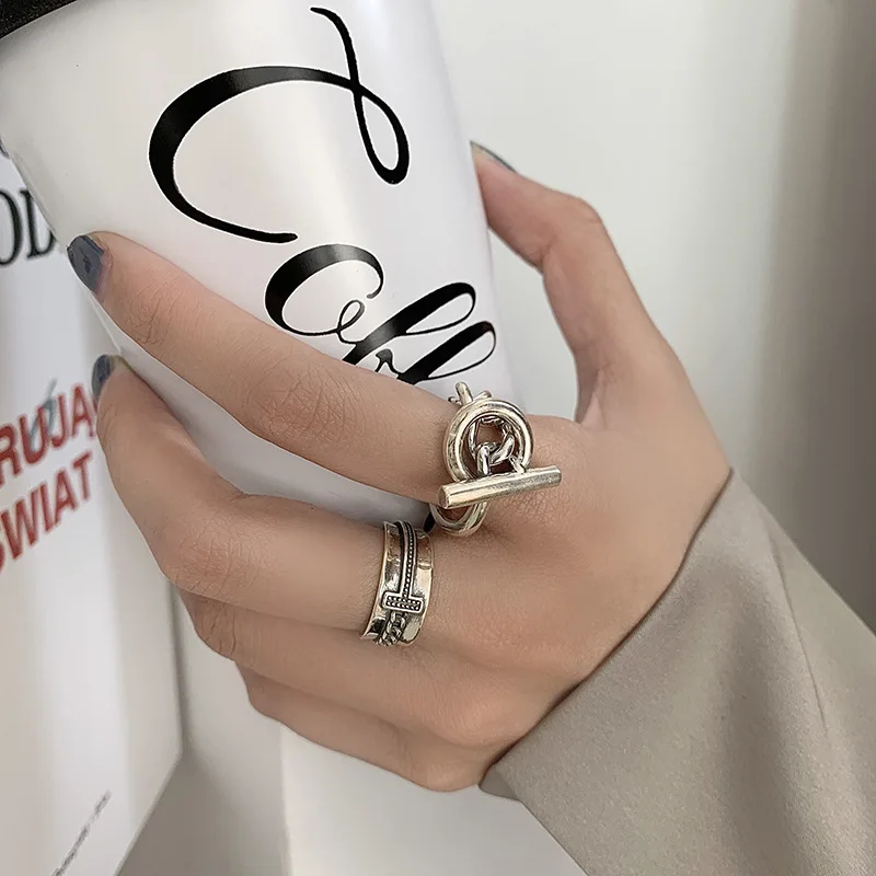 VENTFILLE 925 anillos de plata esterlina nueva joyería de fiesta encanto Vintage doble capa geométrica diseño de uñas accesorios regalo Dropship